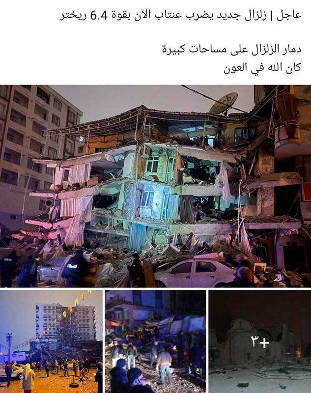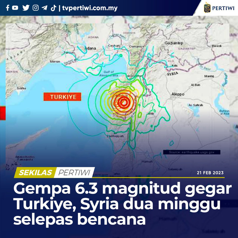 #Terkini: Dua gempa bumi baru berlaku di wilayah Hatay, yang pertama dengan magnitud 6.4 pada skala Richter di wilayah Defni dan yang kedua dengan magnitud 5.8 di wilayah Samandag, di selatan Turkiye.